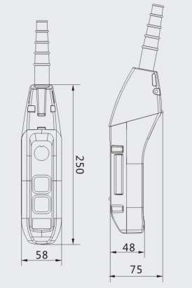 Equipped with rubber cable sheath and waterproof sealing strip, it has good (IP65) dust-proof and rain-proof performance, so this product is especially suitable for open air, rain and snow, dusty environment and places with wet hands, such as electric hoist, The open-air material conveyor belt, remote control of electrical equipment in the construction industry.